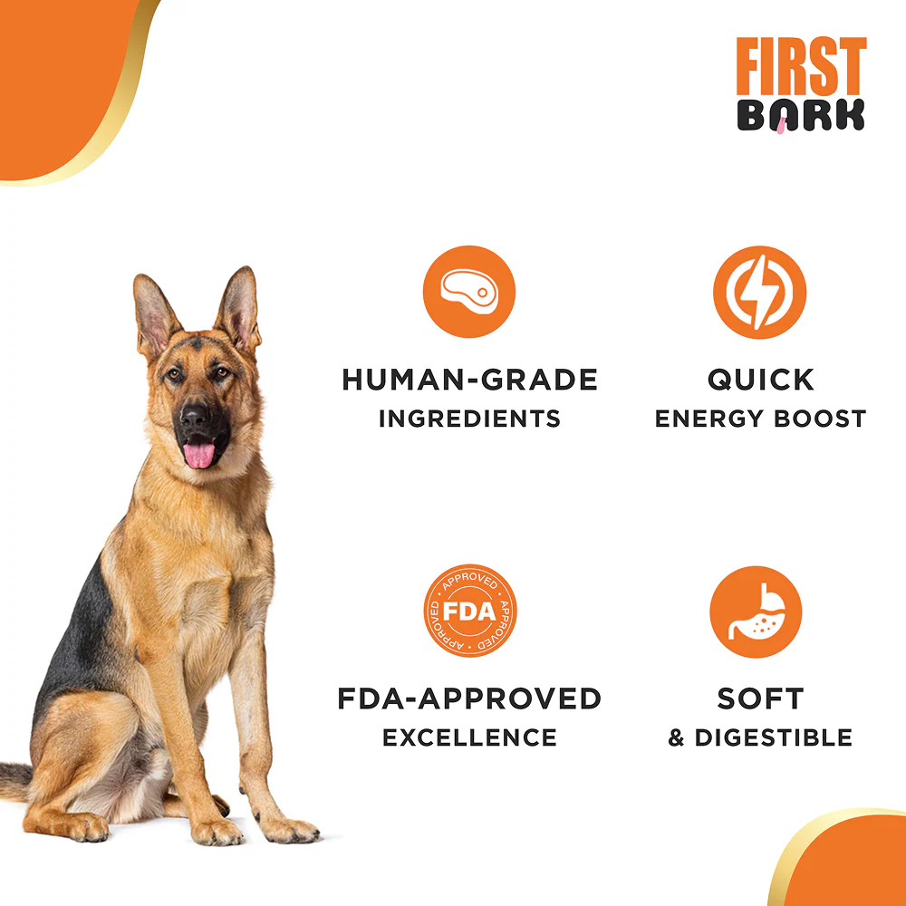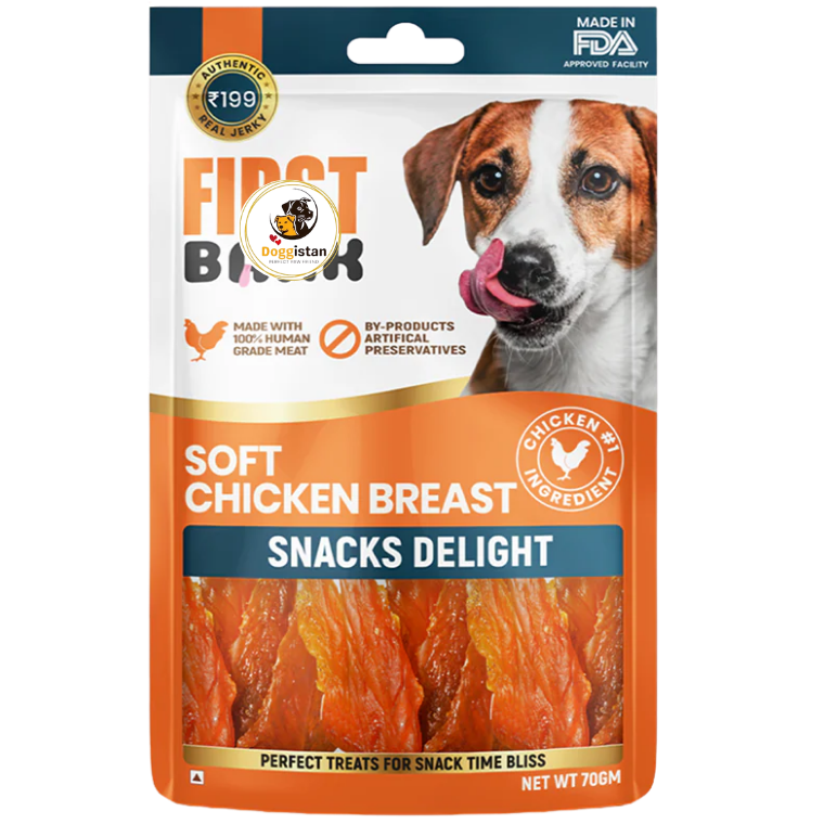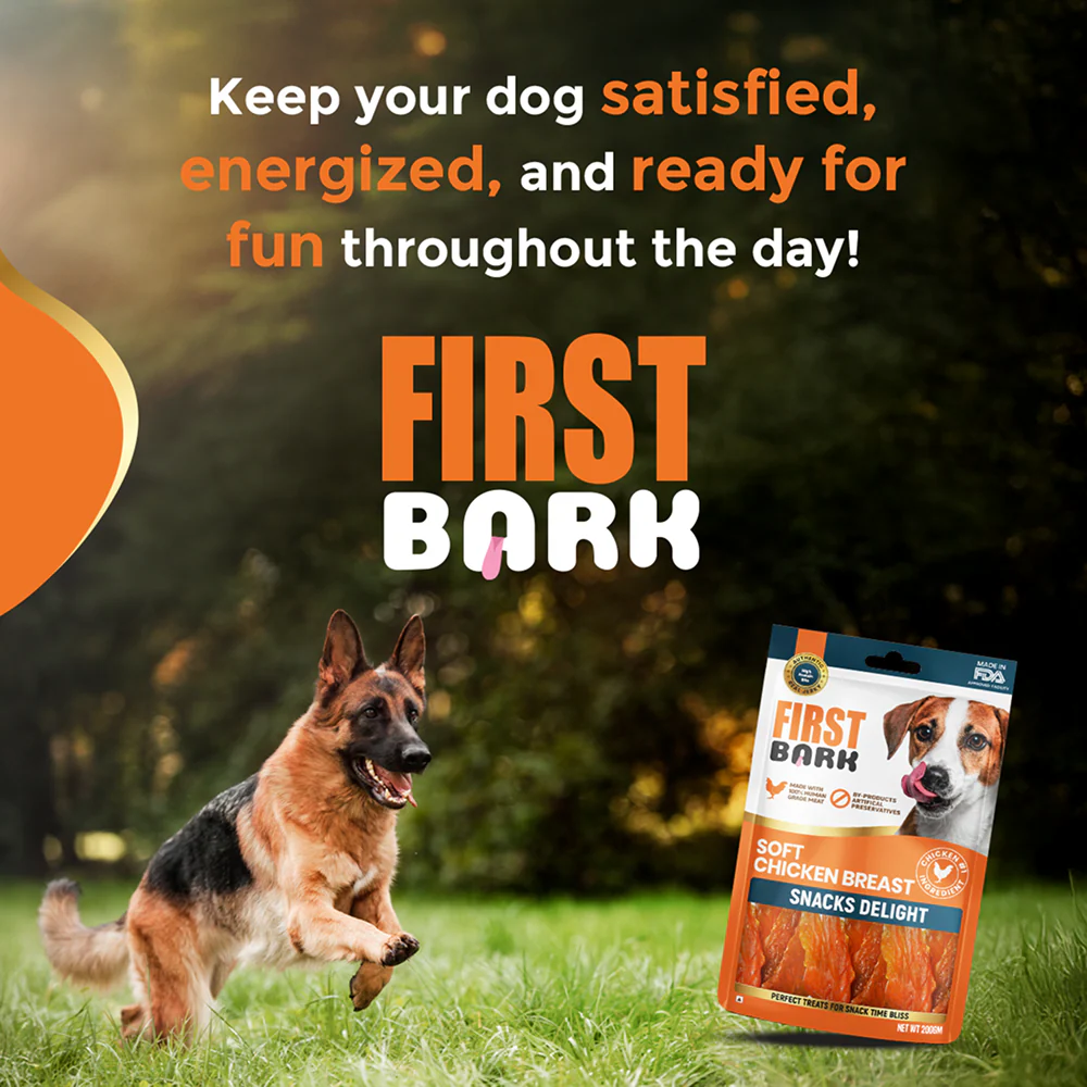 First Bark Soft Chicken Breast Delicious, Nutritious, Well-Balanced & Perfect Treat For Your Pet Chew Make Strong Teeth and Gums Ensure Good Overall Health of The Dog.