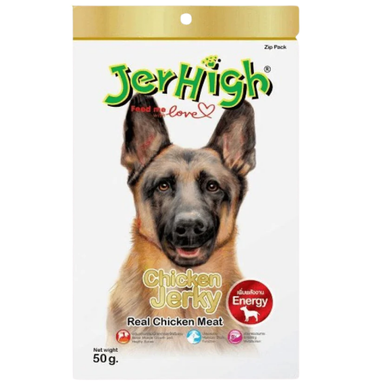 - JerHigh Chicken Jerky is the perfect reward your favorite dog deserves